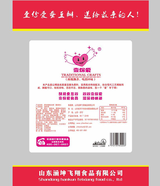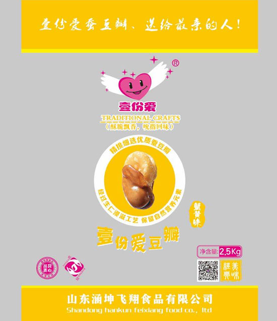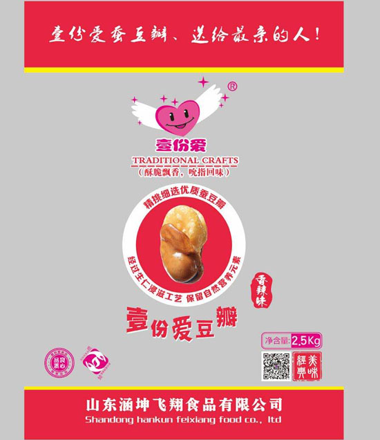 山东涵坤飞翔食品有限公司,坐落于风景秀丽、人杰地灵的孔孟之乡~泗水。泗水县西连世界文化名城孔子古里曲阜,北靠五岳之尊的泰山,东临沂蒙,南峙孟子家乡邹城。泗水县是泗河文化的发祥地,历史悠久,文化灿烂。泗水交通便利,京沪高铁、京沪高速,分别从县境西部、东部而过。 涵坤飞翔食品有限公司现有多条国内先进的油炸、烘烤花生食品生产线,均选用全不锈钢自动控温油炸、烘烤设备,采用传统工艺和现代科技相结合的生产工艺流程,生产模式更具规模化和科学化,公司所注册的“壹份爱”商标已获国家商...